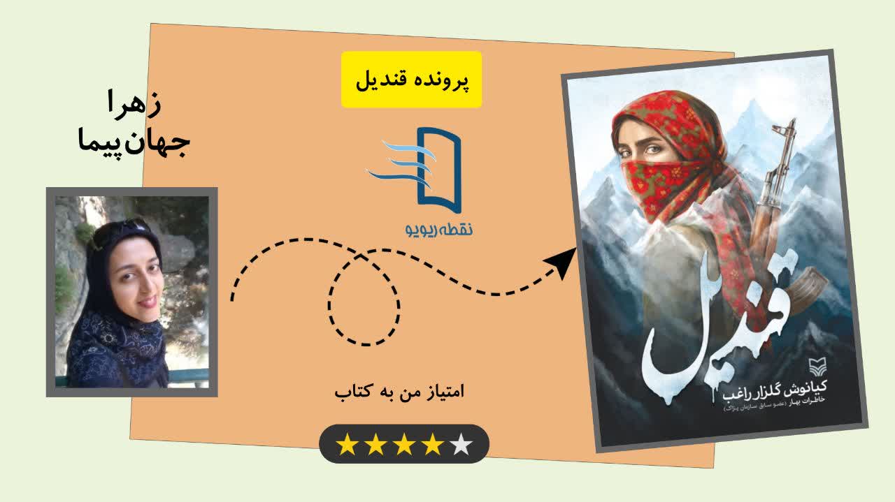 قندیل نوشتهی کیانوش گلزار راغب است که در هشت فصل مسیر زندگی بهار را روایت میکند. روایت با معرفی بهار، خانوادهاش و رابطه او با آنان شروع میشود؛ فضایی که زمینهساز شکلگیری تردیدها، احساسات و انگیزههایی است که بهار را در مسیر انتخابهای حساس قرار میدهد. بخش میانی کتاب تصمیم بهار را برای پیوستن به گروهک پژاک، مسیر رفتن و حوادث تلخ و واقعیتهای سختی که در مدت عضویتش تجربه میکند در بر میگیرد. جاییکه فاصله میان وعدهها و حقیقت خود را آشکار میکند. در نهایت در بخش پایانی، ماجرای دل کندن بهار از گروهک روایت می¬شود. بازگشتی که نقطهی اوج احساسات و یکی از تاثیرگذارترین لحظات کتاب است. نقطهای که هم شخصیت اصلی و هم خواننده از فضای سنگین و ناامن روایت بیرون میآیند و برای نخستینبار، نفسِ آرامش، امید و امنیت را حس میکنند.