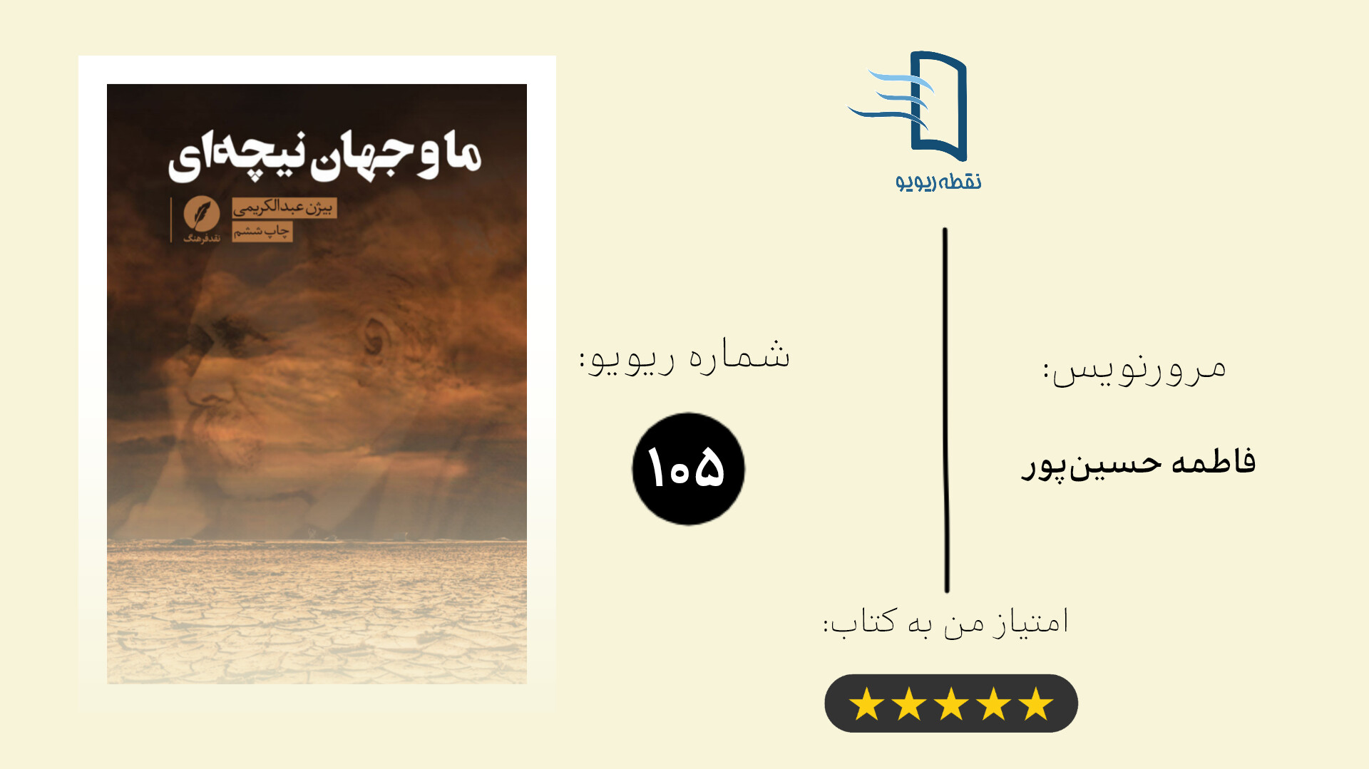 «ما و جهان نیچهای» بیشتر از آنکه پاسخ بدهد، سؤالها را دقیق میکند؛ و شاید همین، مهمترین کاری باشد که یک کتاب فکری خوب میتواند انجام دهد: اینکه بعد از تمامشدنش، هنوز ذهنت مشغول باشد.